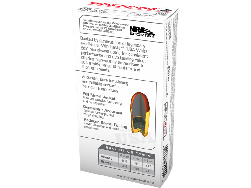 Winchester USA 45ACP 230 Grain FMJ 50Rd Q4170